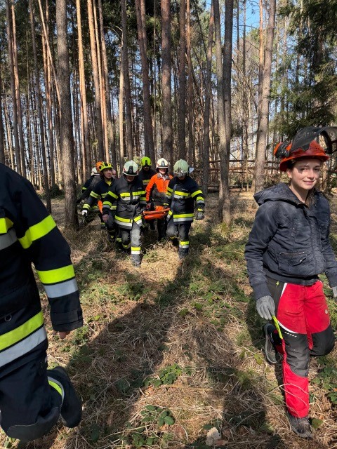 Mittels Korbtrage wurde die verunfallte Person schonend aus dem Waldstück getragen und dem Roten Kreuz zur weiteren Versorgung und zum Abtransport in ein Krankenhaus übergeben.