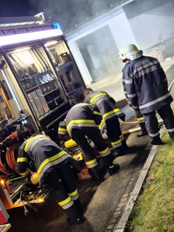 Ein vom Besitzer erstellter Löschwassertank wurde zum ersten mal mit der vorhandenen Saugstelle beübt, ebenso wie andere Zubringleitungen vom örtlichen Hydrantennetz. Der Innenangriff wurde mit jeweils einem Atemschutztrupp der beiden Feuerwehren durchgeführt.