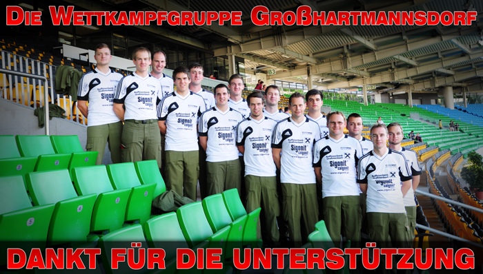 Wettkampfgruppe Die FF Großhartmannsdorf blickt auf eine lange Tradition von erfolgreichen Wettkampfgruppen in unserer eigenen Geschichte zurück. Ein Portrait der aktuellen Wettkampfgruppe mit Ihren Mitgliedern und den größten Erfolgen, finden Sie hier im Anschluss und in der Navigation unter "Die Gruppe". Weiters sind unter "Bewerbe" die aktuellen Bewerbsergebnisse, sowie auch von den vergangenen Saisonen mit der dazugehörigen Berichterstattung ersichtlich. Getreu dem Motto "Videos" sagen mehr als tausend Bilder und Worte finden Sie auch ein paar Löschangriffe von uns.